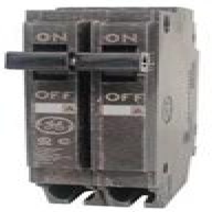 GE Molded Case Circuit Breaker, THQP Series, 30 A, 120/240 VAC, 10 kA Interrupt Rating, 2 Poles, 1 ph Phase, Lug Connection, 100A/THQ Frame, Internal Common Trip, Toggle Actuator, 8 to 4 AWG Wire, Plug-In Mounting, 1 in Width, 3.28 in Length, 2.38 in Height