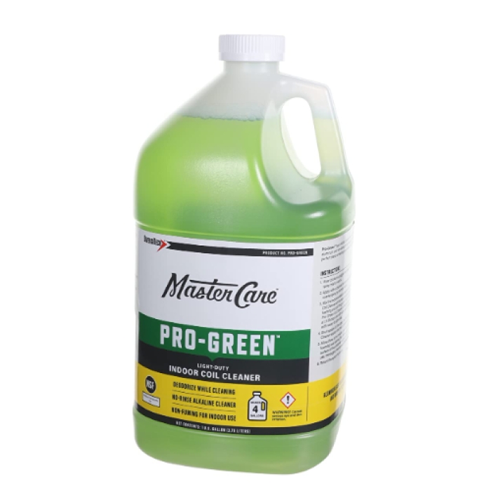 Pro-Green™ is a no rinse, mild alkaline coil cleaner that can be used on air cooled condensers, evaporators, electronic and permanent filters, fan blades, grilles, mini split and micro channel applications. Pro-Green™ cleans deposits on coils and rids condensate pans of slime. It is NSF approved for use in federally inspected plants and available in numerous packaging configurations.