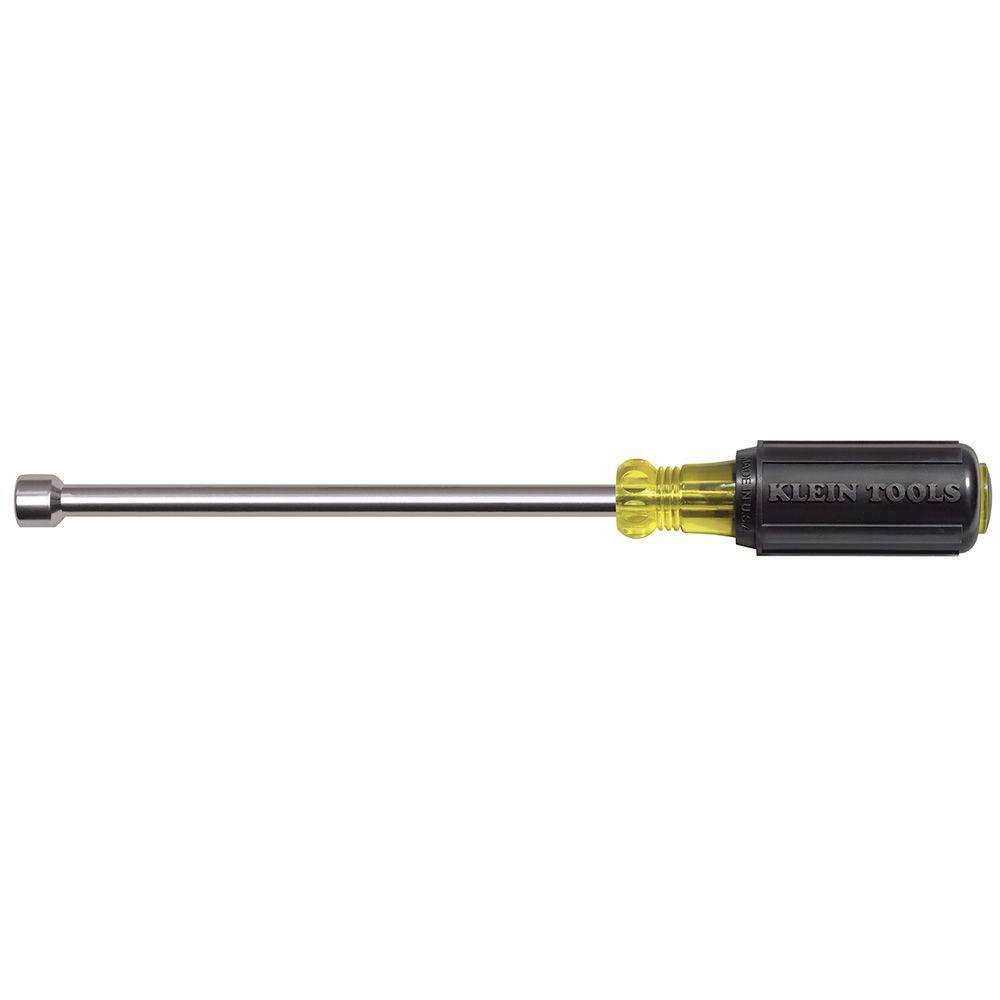 KLEIN TOOLS® Nut Driver, 9-3/4 in Overall Length, 6 in Shank, Hollow Shank, Cushion Handle, Rubber Handle, Non-Insulated, Magnetized Tip
